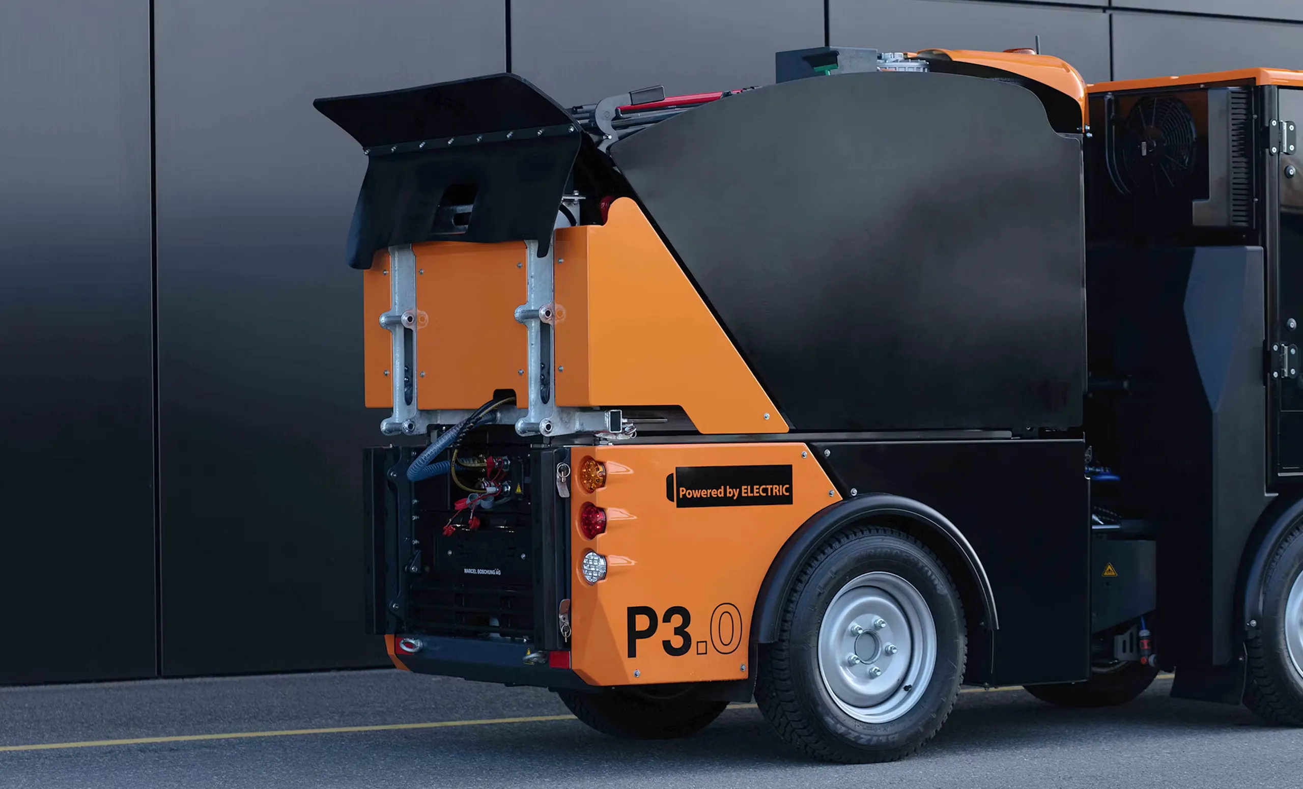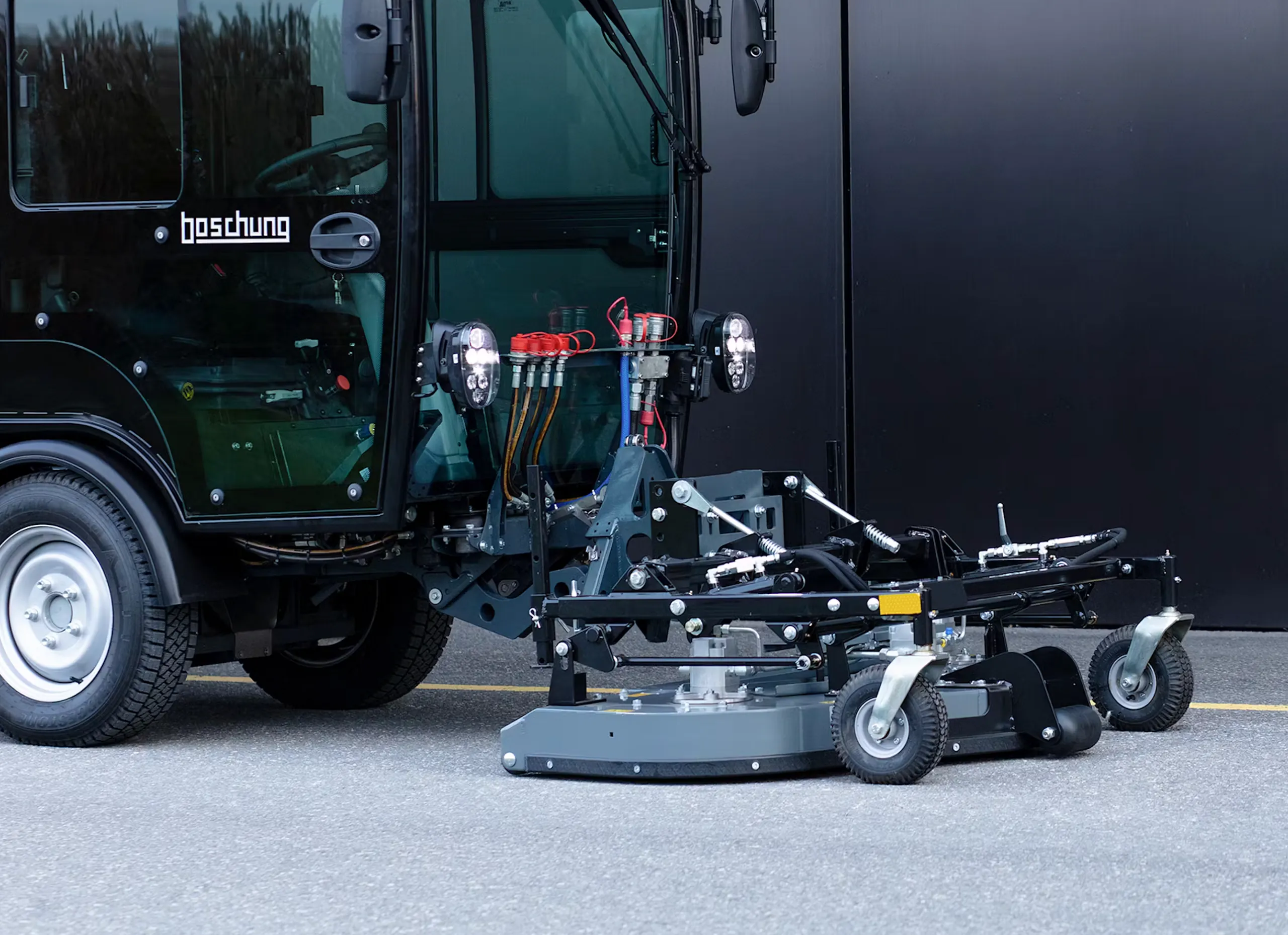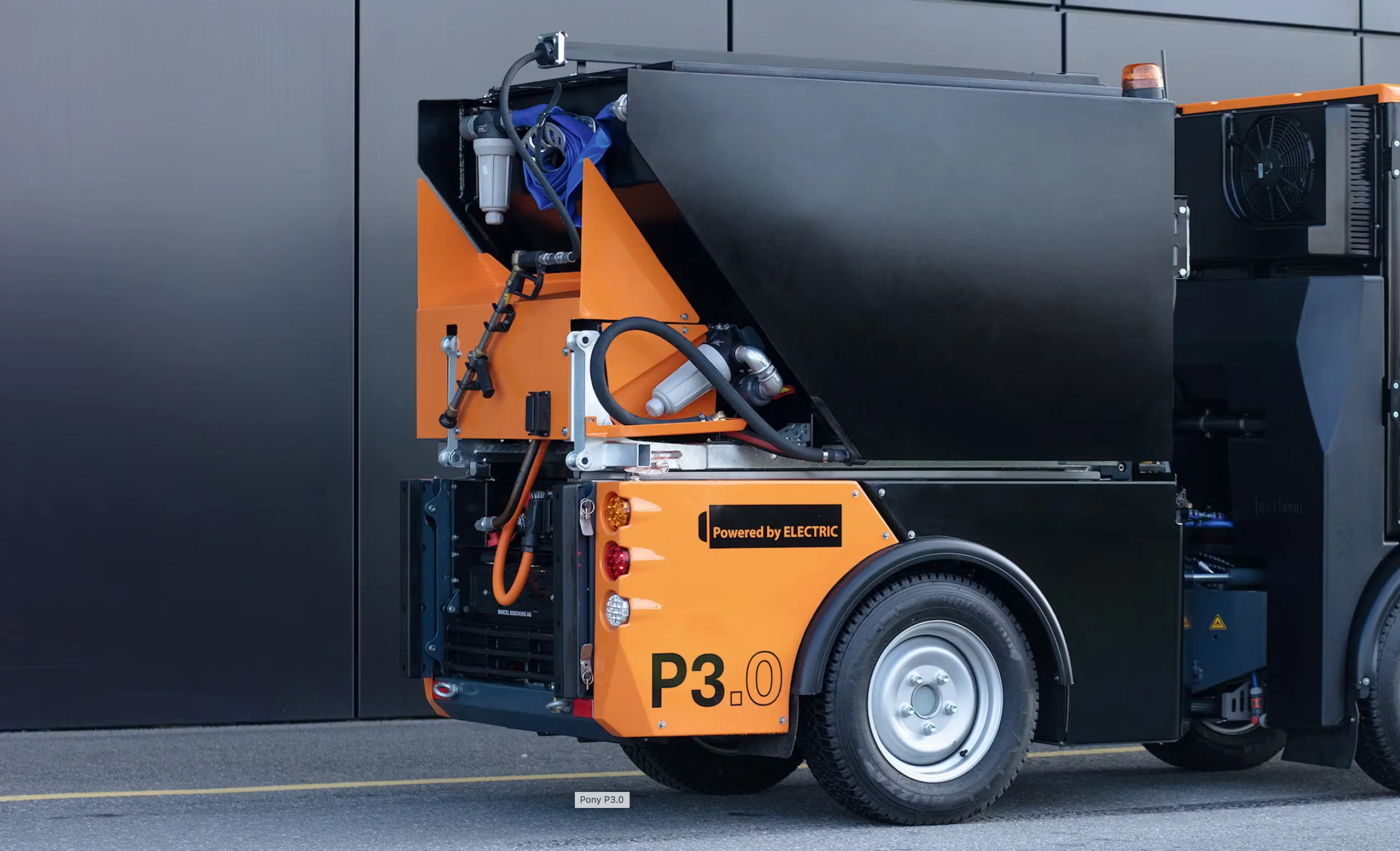 Boschung Pony P 3.0 MAX er en allsidig og kompakt maskin utviklet for profesjonell bruk året rundt. Den kan tilpasses en rekke ulike oppgaver – fra feiing og snørydding til saltspredning og høytrykksvask – og kombinerer kraft, presisjon og fleksibilitet i et robust og kompakt format.