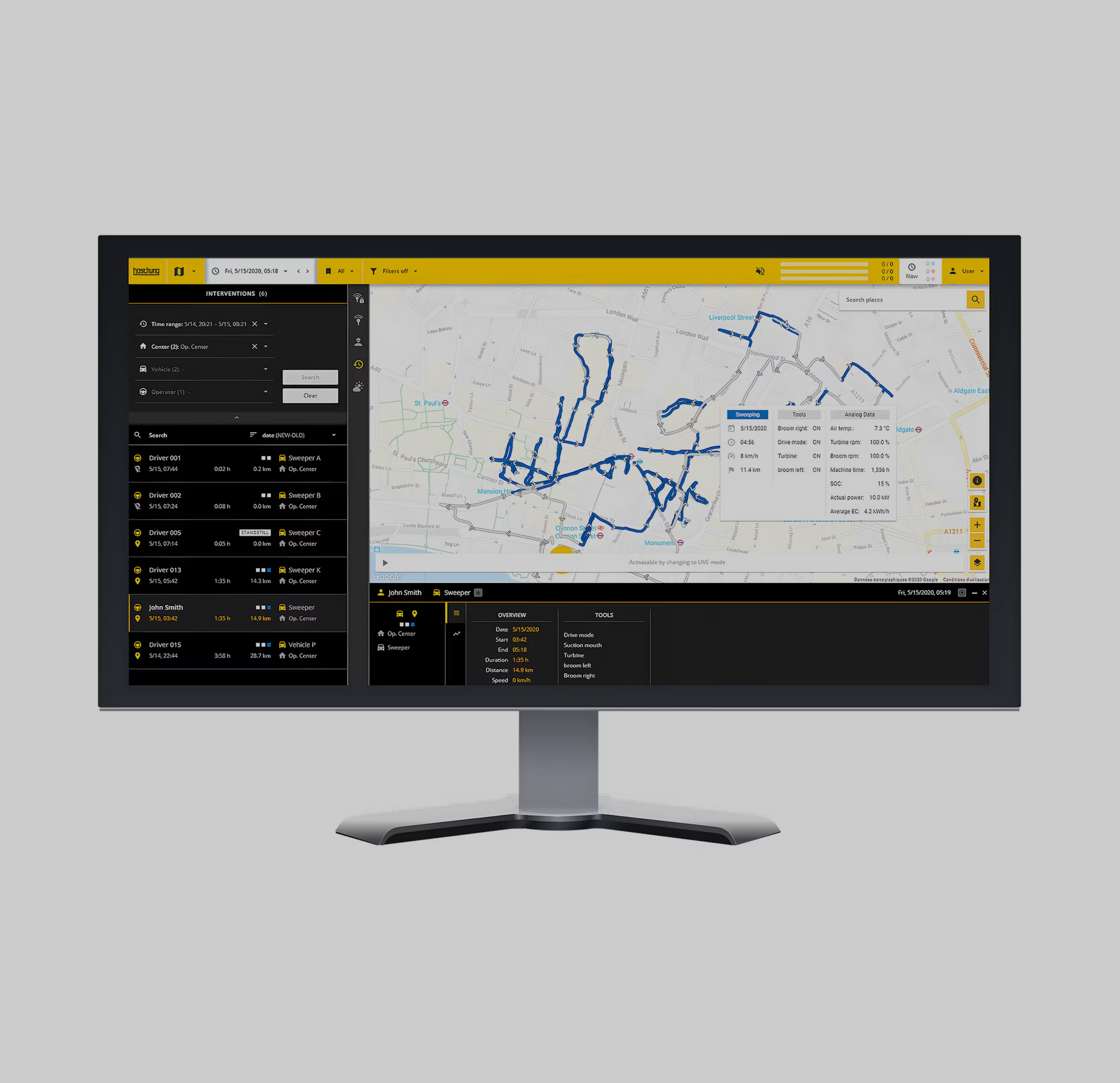 - bVision-plattform – sanntidsdata om posisjon, batteristatus og feiemønster