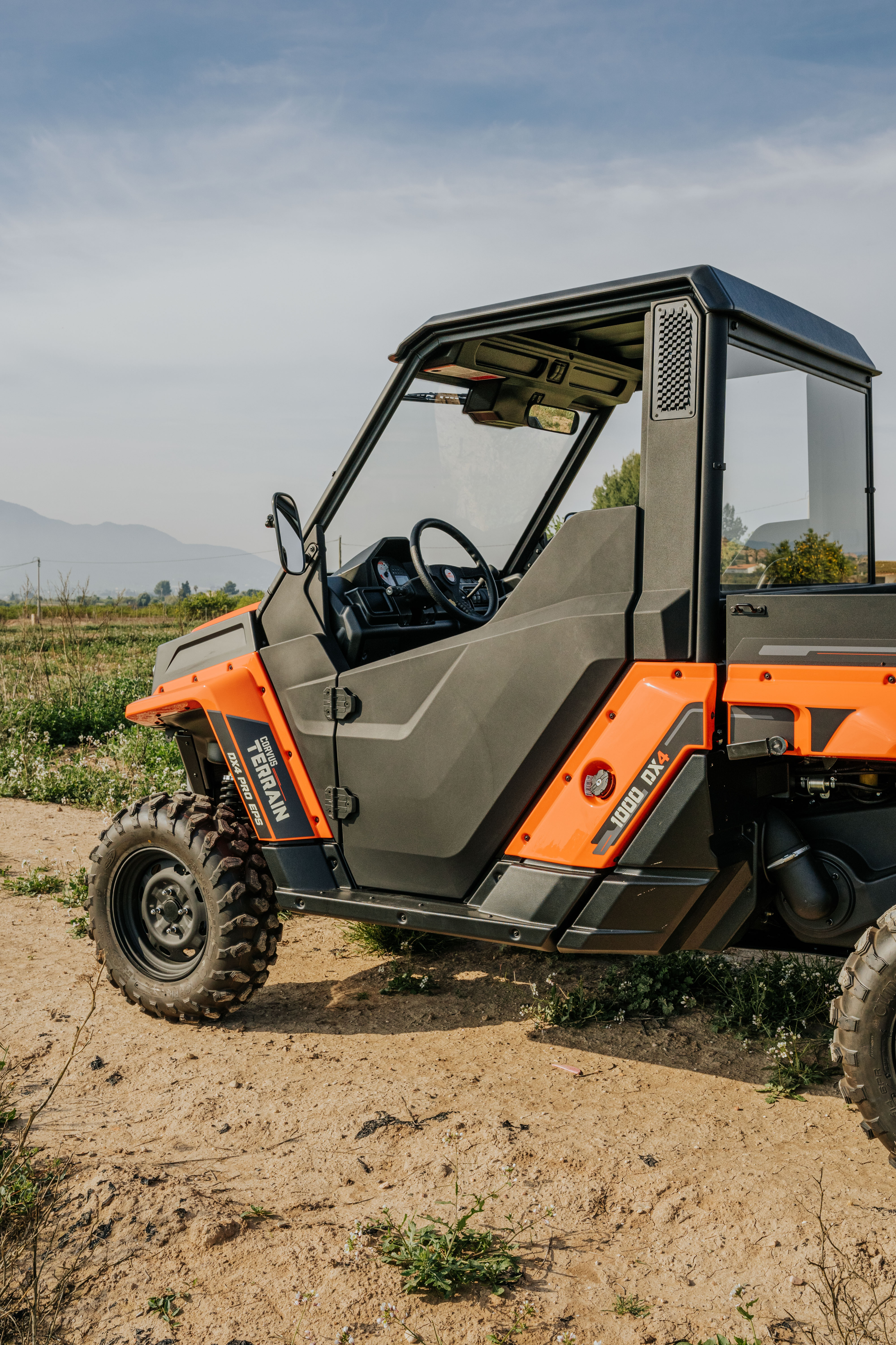 Den romslige kabinen gir god takhøyde, bred sikt og enkel inn- og utstigning uten hindringer mellom setene. Terrain DX4 kombinerer komfort og funksjonalitet med ekte arbeidskraft – et nytttekjøretøy bygget for å jobbe, hver eneste dag.