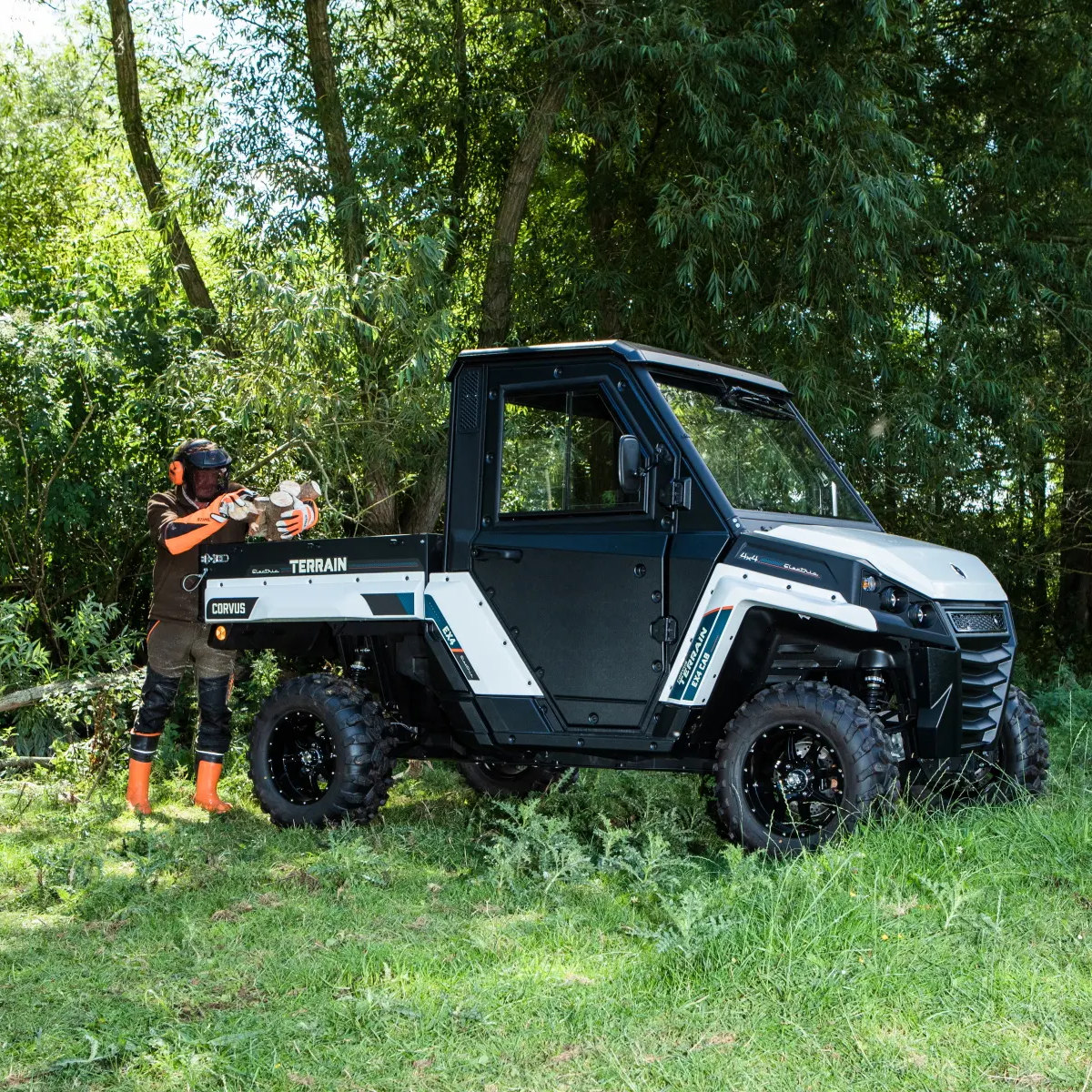 Corvus Terrain EX4 er en 100 % elektrisk UTV utviklet for krevende arbeidsmiljøer innen landbruk, kommunal drift, industri, anlegg og skog. Med kraftig elektrisk motor, solid 4x4-drivlinje og EU-traktor homologering (T1a), er dette et arbeidskjøretøy som kombinerer ytelse, komfort og bærekraft. Det stillegående drivverket gir et behagelig arbeidsmiljø, samtidig som den robuste konstruksjonen sikrer pålitelig bruk i utfordrende terreng.