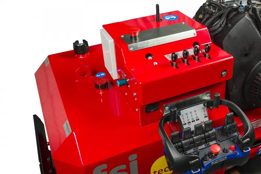 Den kompakte konstruksjonen og lave tyngdepunktet gjør maskinen svært stabil, mens beltene gir jevnt marktrykk og skånsom kjøring – ideelt for park- og hagearbeid, kirkegårder og anlegg med begrenset tilgang. Fresingen gjøres via FSI Power-Cut freseskive, drevet av en vedlikeholdsfri hydraulisk motor, og aktivert med FSI Power-Clutch med innebygd brems.