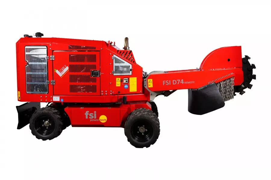 FSI D74 TRACK er den mest kraftfulle beltedrevne stubbefreseren fra FSI – utviklet for profesjonelle brukere som arbeider under ekstreme forhold og med de største og hardeste stubber. Utstyrt med en 74 hk vannkjølt Kohler dieselmotor, hydrostatisk drift og kontraroterende belter, kombinerer D74 TRACK rå styrke med maksimal stabilitet, fremkommelighet og driftssikkerhet.