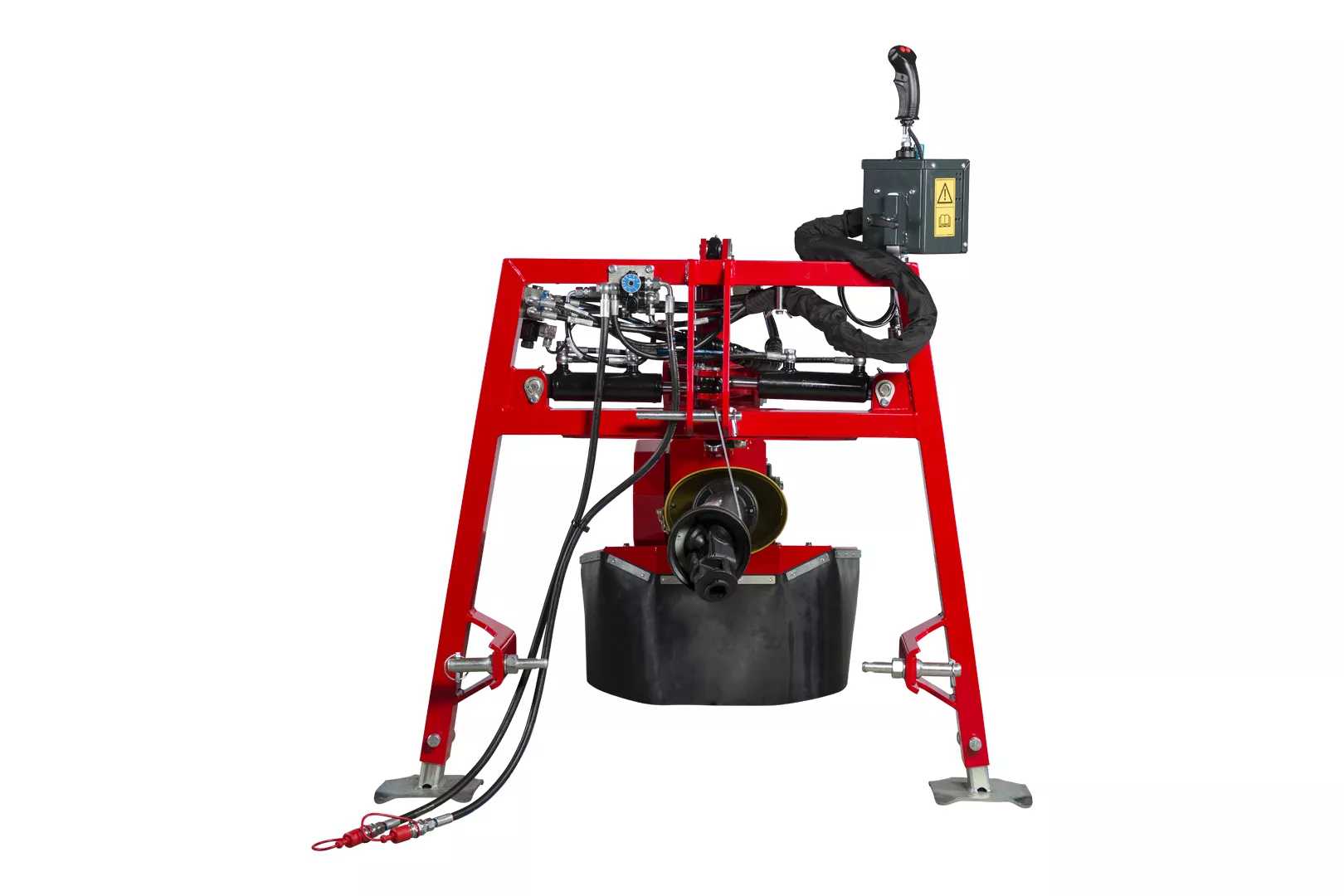 Maskinen har mekanisk sideforskyvning som gjør det enkelt å jobbe på begge sider av stubben, og leveres med beskyttelsesutstyr og verktøy – klar til drift.
