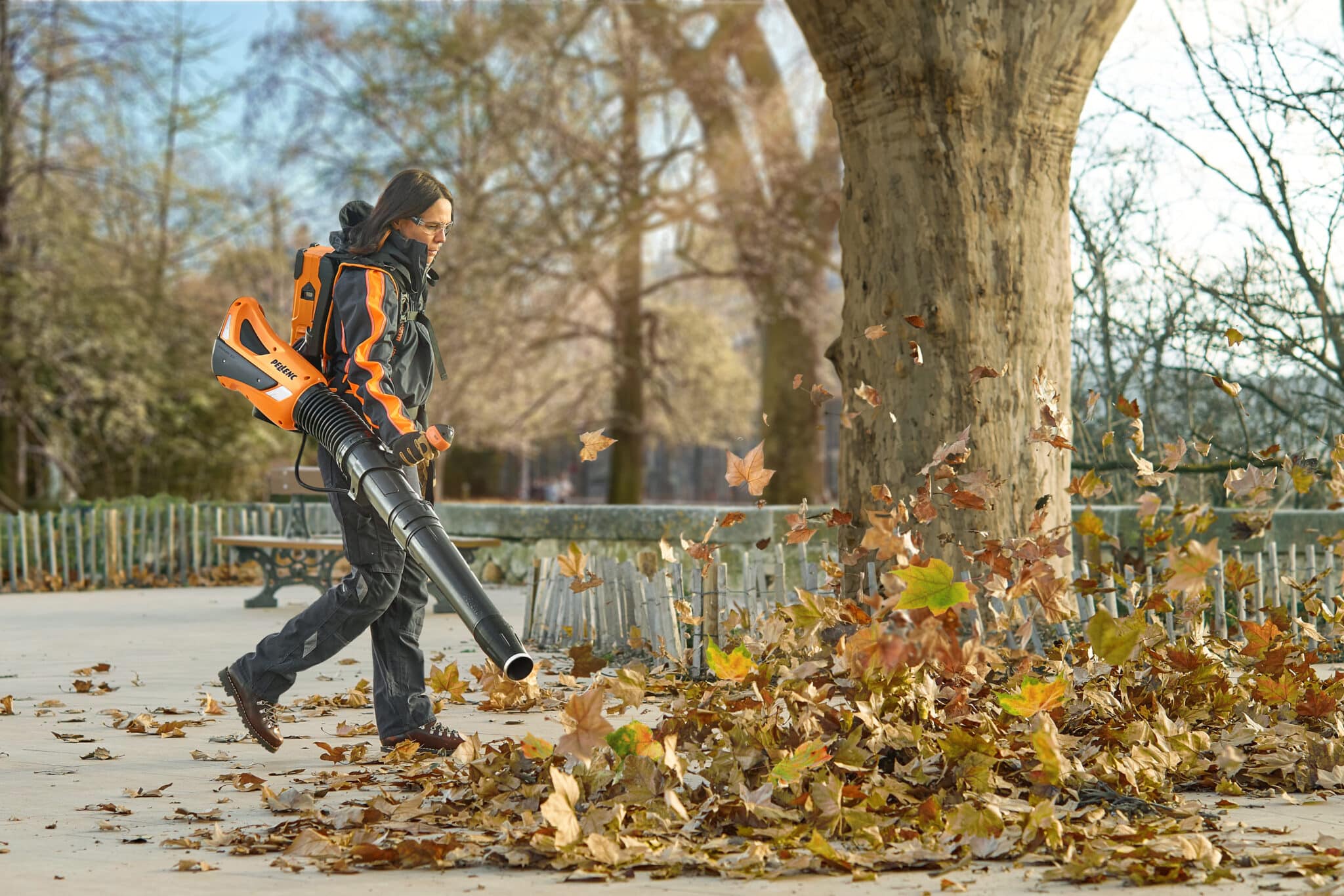 Til større oppgaver leverer Airion Backpack overlegen blåsekraft og høy komfort. Med ergonomisk ryggsele, cruisekontroll og intuitiv LCD-skjerm er den utviklet for lange arbeidsøkter. Løvblåseren er stillegående, vibrasjonsfri og vanntett, og de mange munnstykkene gjør den allsidig i både tørt og vått vær.